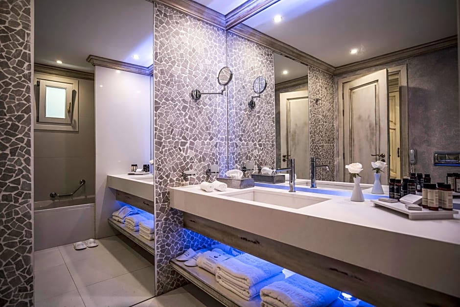 Step inside the resort’s tastefully soundproofed rooms and discover a haven of comfort, complete with air conditioning, private entrances, and garden views. For those looking to indulge, the on-site spa, Turkish baths, wellness packages, and hot tub provide perfect spots to relax after a day of water sports, tennis, or exploring nearby attractions. The resort also boasts a fitness center, live music performances, and a 24-hour front desk to cater to your every need, while free WiFi and private parking make your stay convenient and hassle-free. With amenities like room service, laundry, and accessible facilities, Mitsis Selection Laguna ensures both convenience and pampering at every turn.